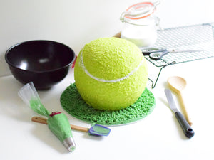 - When the cake tin is cool, repeat all of the steps to make the other half of the tennis ball cake.