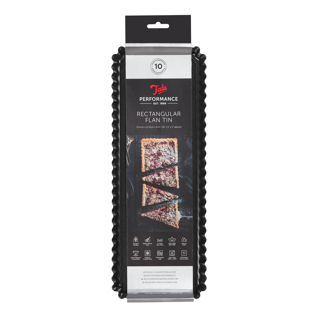 The loose base design allows for easy removal of your baked creations without the risk of damaging them. Whether you're baking sweet or savory treats the even heat distribution of this flan tin ensures consistent results every time. Its rectangular shape and generous size make it perfect for baking family-sized desserts or appetizers. Plus the sturdy construction ensures long-lasting performance making it a reliable tool in your kitchen for years to come.