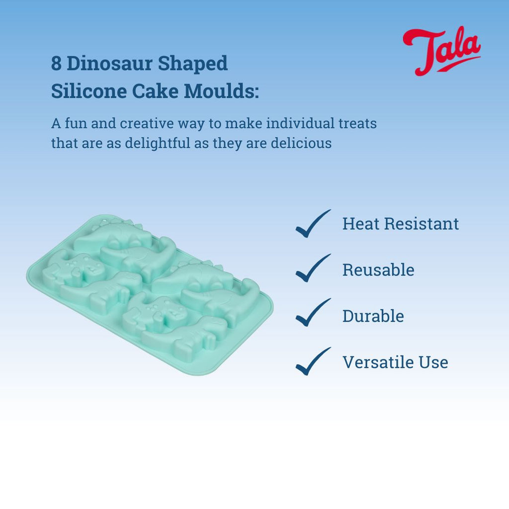 Bring your bakes to life with the Tala 8 Cup Dinosaur Silicone Cake Mould – a fun and creative way to make individual treats that are as delightful as they are delicious. Featuring eight detailed dinosaur-shaped cavities, this mould is perfect for children’s parties, themed events, or just adding a bit of prehistoric charm to everyday baking.