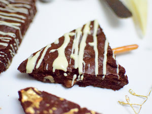 A festive twist on a classic tea time treat! These decadent fudgy chocolate bakes are great fun and super easy to make. Walnuts add delicious crunch but you can replace with nuts and dried fruits of your choice, if you want to, just replace like for like (with the same weight).