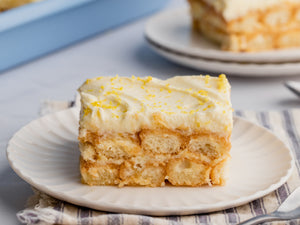 2. Combine the limoncello, remaining caster sugar and 100ml boiling water in a bowl and whisk together. One at a time, dip the sponge fingers into the bowl and soak for a few seconds. Then place the soaked biscuits into the Tala enamel dish, creating a base layer of sponge fingers.
