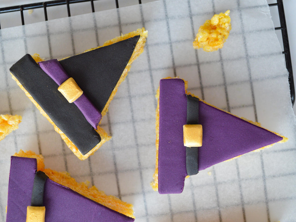 - With a sharp knife cut out 20-24 witch hats, about 7cm x 6 cm.