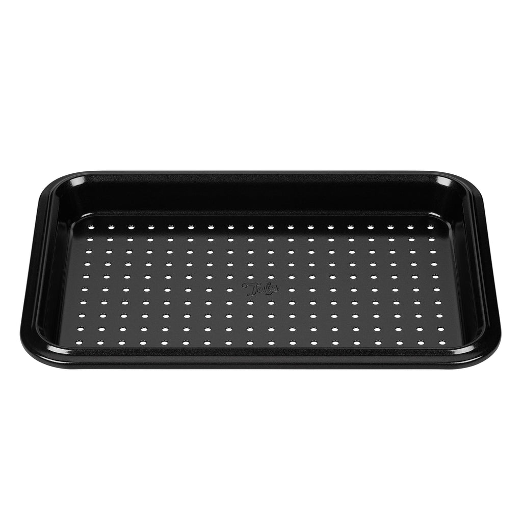 Sturdy and robust the Tala Performance range of baking and roasting kitchenware has been revolutionising the way food enthusiasts and professionals have been grilling roasting and baking their meals. Built from heavy-duty robust 1.0mm thick carbon steel with a super durable non-stick coating Tala Performance will deliver outstanding results time after time. With over 60 pieces in the range from cake tins and baking trays to roasters and pie dishes the collection is specifically designed for space saving in mind and has a ten year quality guarantee meaning you can trust these products are designed to last a lifetime.The range is designed with beautifully rolled edges to provide extra strength and making each piece rust resistant; these products resist warping or rusting.Food is released flawlessly and intact allowing you to cook with little or no added grease oil or parchment paper for healthier results.The non-stick qualities of the range is due to the superior Whitford Eclipse double layered coating which is used. Whitford are a world specialist in non-stick coatings and extensive testing and research has confirmed that the Whitford Eclipse is the very best non-stick coating available out-performing other conventional coatings. The coating is applied using the best methods and the finest state of the art non-stick spray coating facilities meaning a continuous and stable coating is used so each batch is the same. Its outstanding non-stick qualities are also completely PFOA (perfluorooctanoic acid) and BPA free.The coating gives the range a sleek glossy appearance and premium feel. The gloss finish allows food to heat evenly and makes the pieces a dream to clean.The UK’s best-loved Tala Performance bakeware is tried tested and trusted by technical consultants and food technologists allowing you to buy and cook with confidence.More features:• Fridge freezer and dishwasher safe• Safe for use with metal utensils• Heat safe up to 240 degrees Celsius • All cake tins from the range are embossed with tin size to make identifying the right tin for the right recipe no problem!