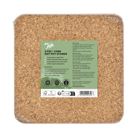 The Tala Set of 2 Square Cork Hot Pot Stands is an eco-friendly and practical addition to your kitchen and dining area, designed to protect your surfaces while adding natural charm to your space.
